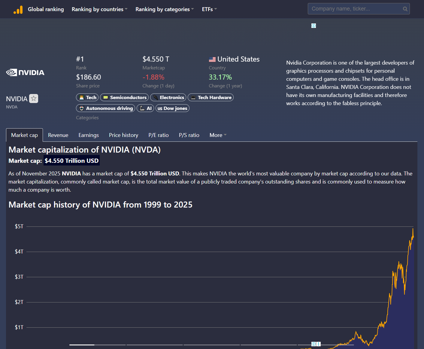 Trend Insight: Capital is increasingly concentrated in AI and tech giants—companies like Nvidia and Microsoft are not just stocks; they are macro-capital vessels. By tracking them via CompaniesMarketCap, you’re essentially watching where global capital is placing its long-term bets.