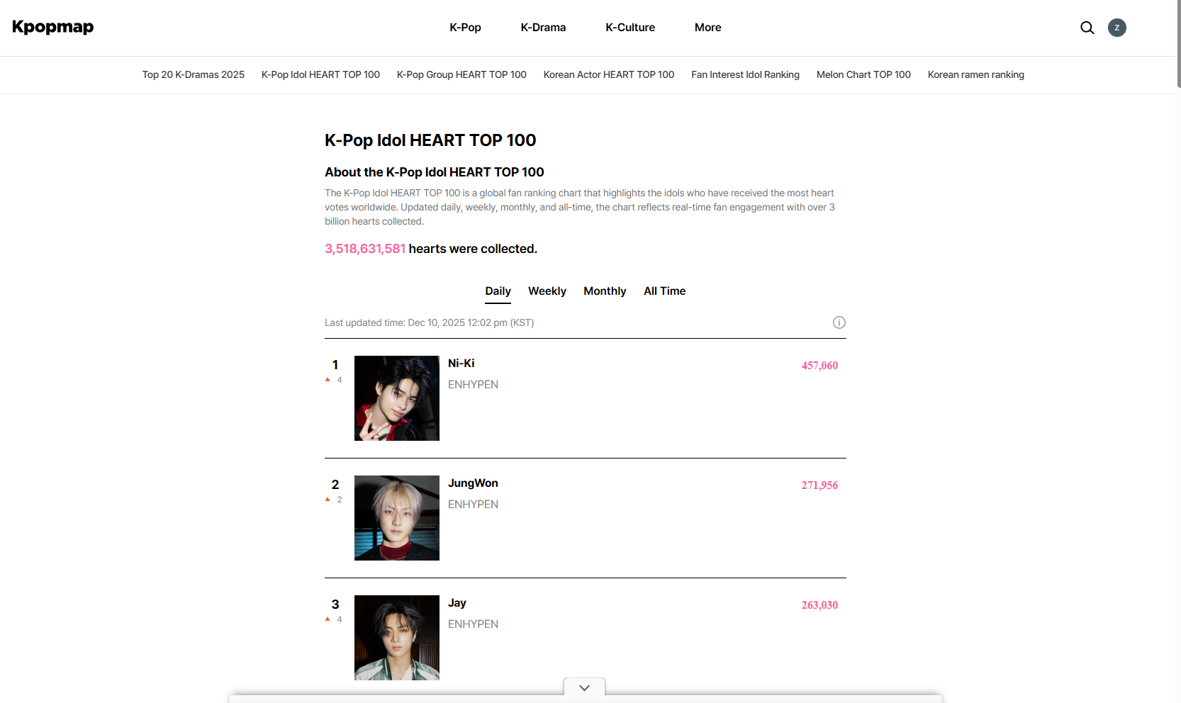 - Idol & Group Popularity Trends — via the “Fan Interest Index” and global fan‑vote/“heart” charts (daily / weekly / monthly).